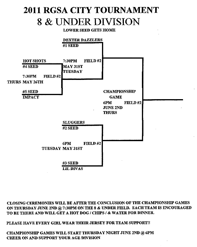 Speaking of the tournament our first game is on Tuesday against Lil Divas. Here is the bracket rundown for this coming week.