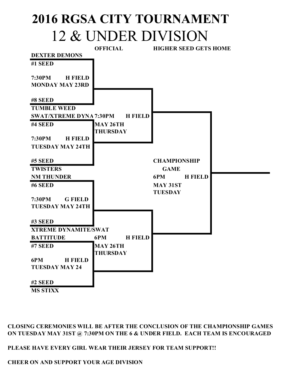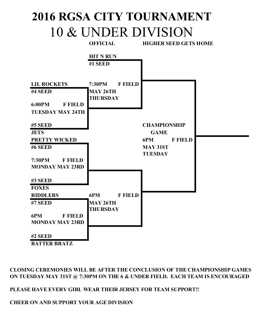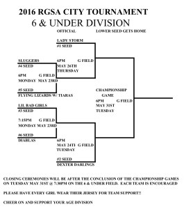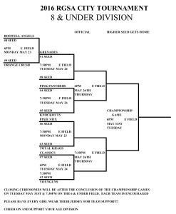 Here are the city tournament brackets for this week. They are also available on each of the age division’s calendar pages.
