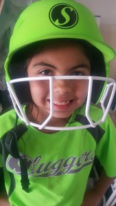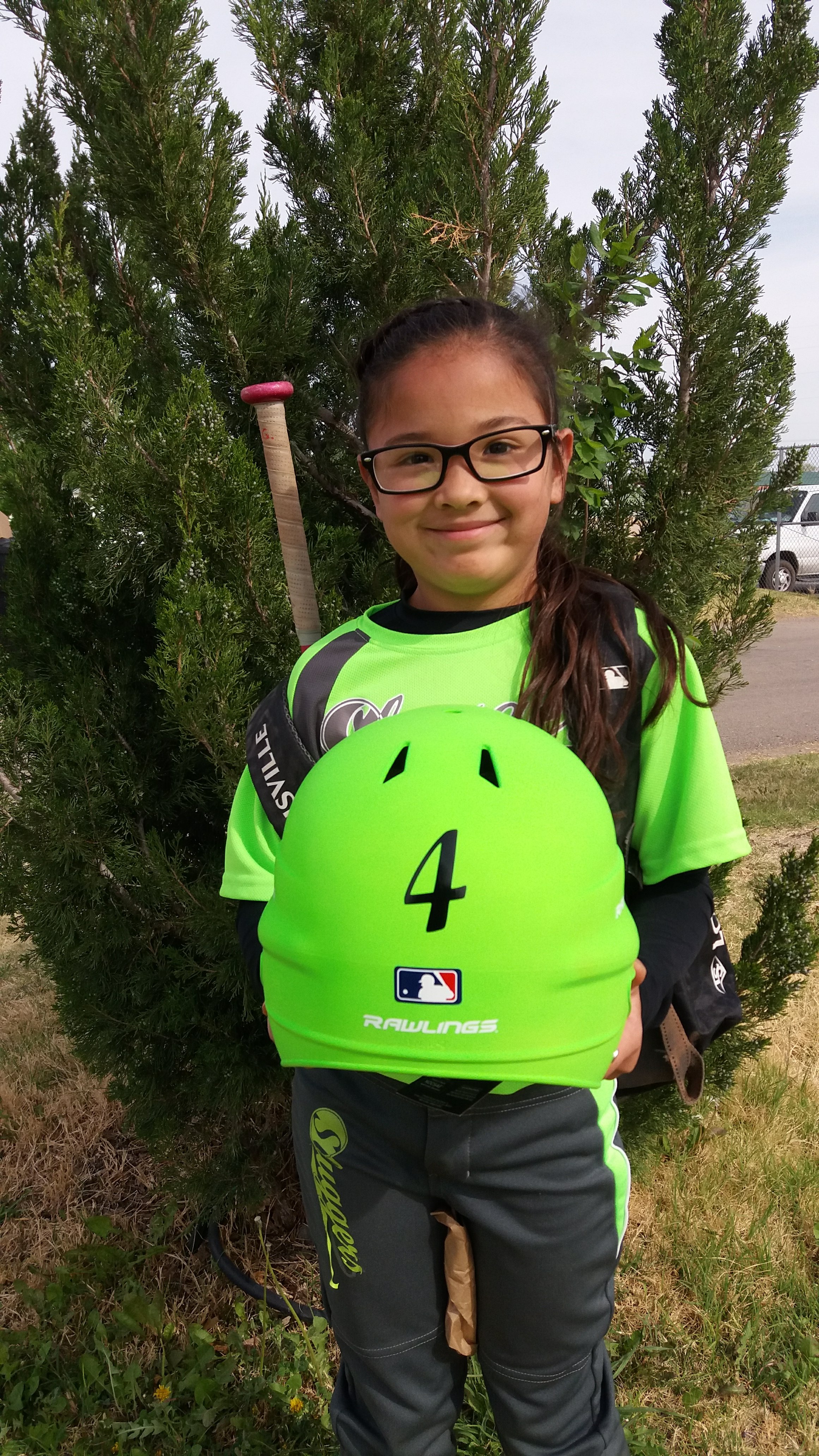 Jayla got her helmet with three singles and two RBIs in the first game.