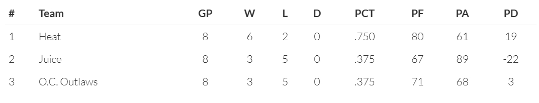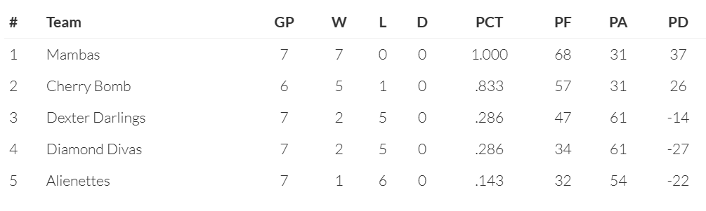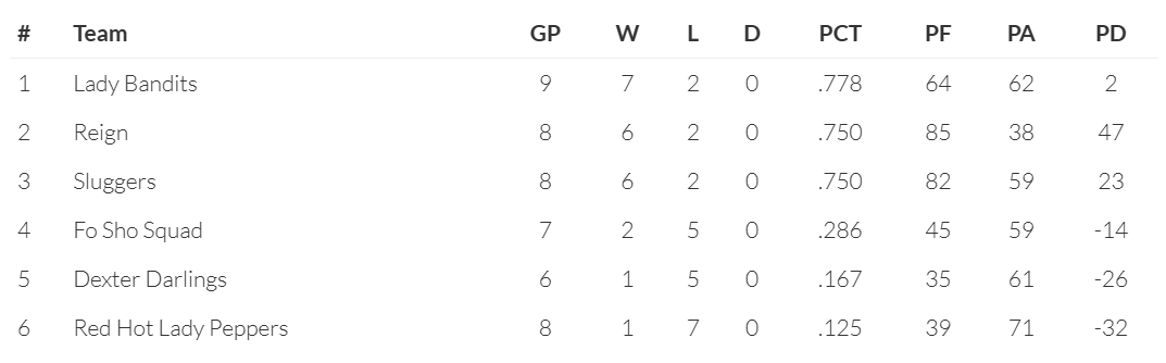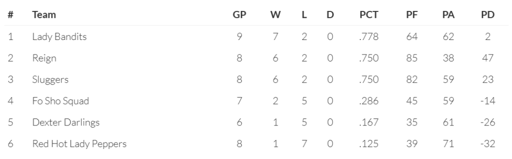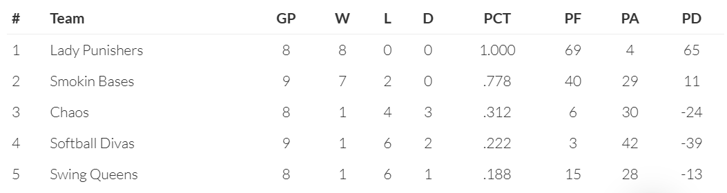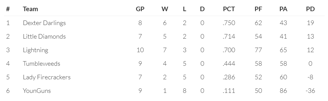 We’ve had a few inquiries about the team standings so here we go.